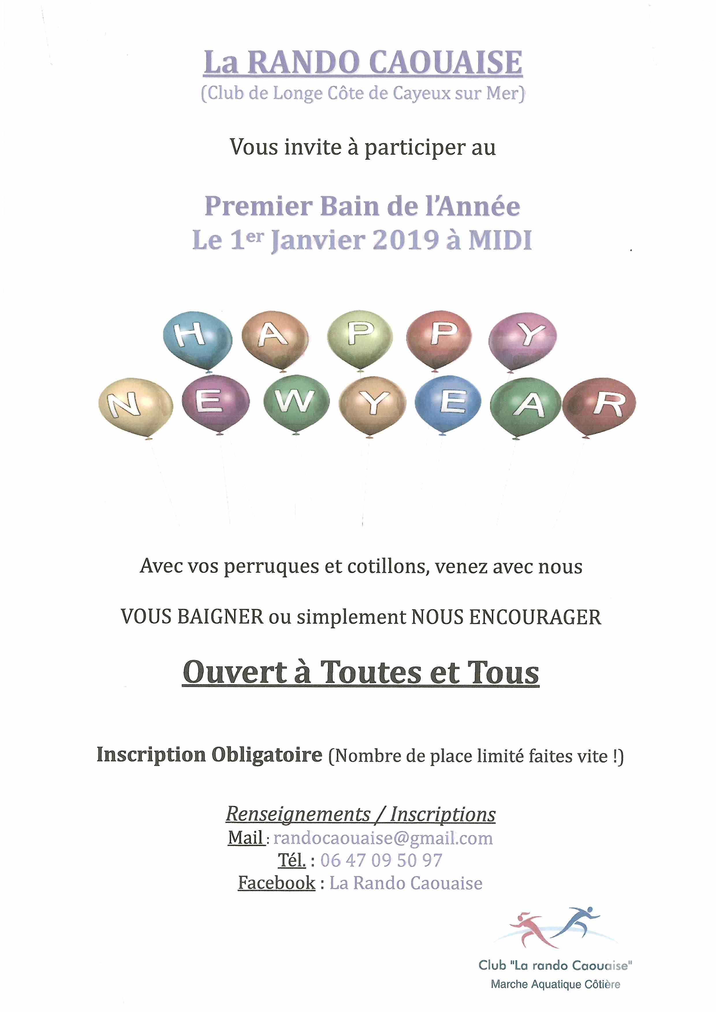 Renseignements et inscriptions obligatoires avant le 30 Décembre. Contact :06 47 09 50 97 ou par mail : randocaouaise@gmail.com