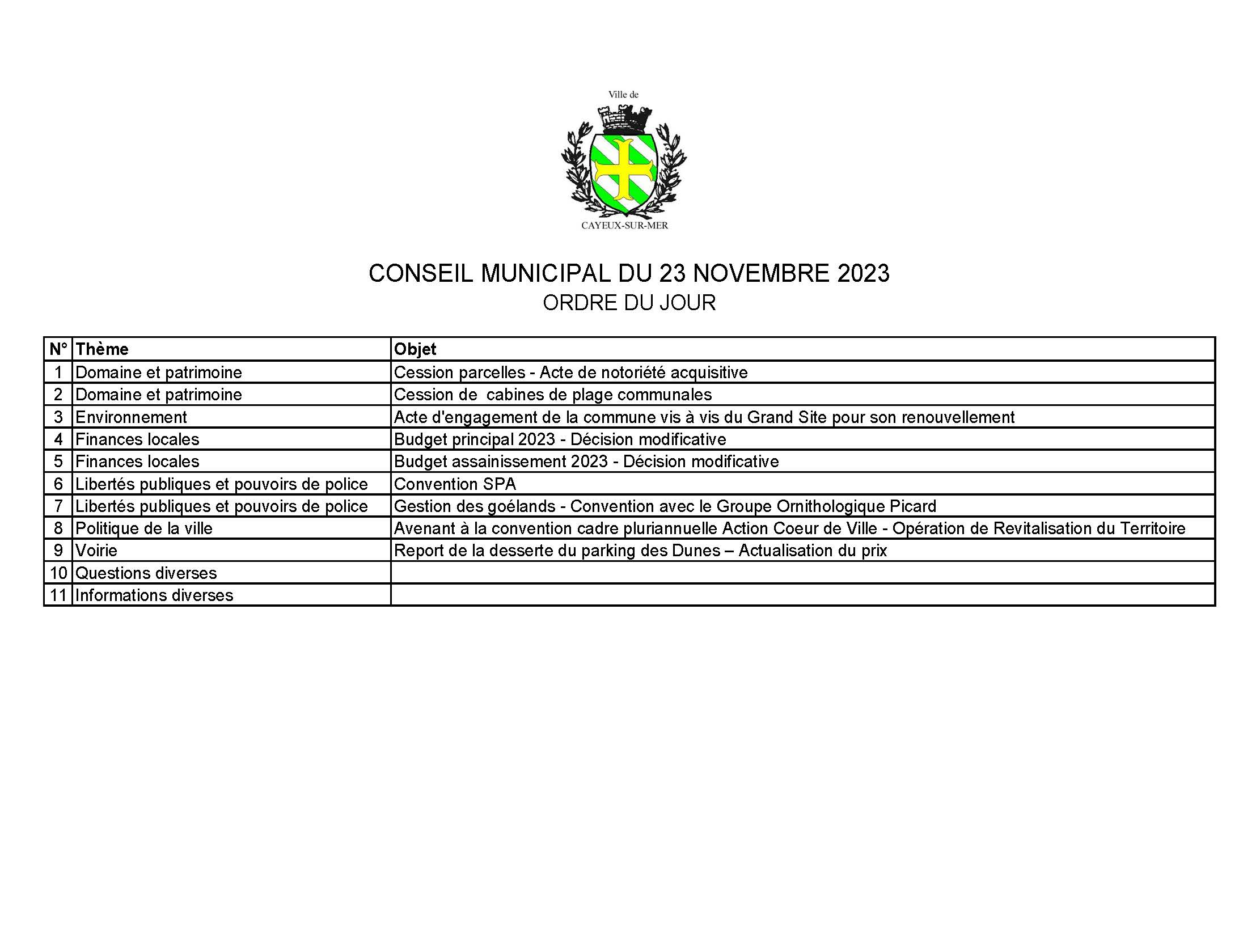 Le conseil municipal se réunira jeudi 23 novembre 2023 à 18 h en salle d'honneur de la mairie.
