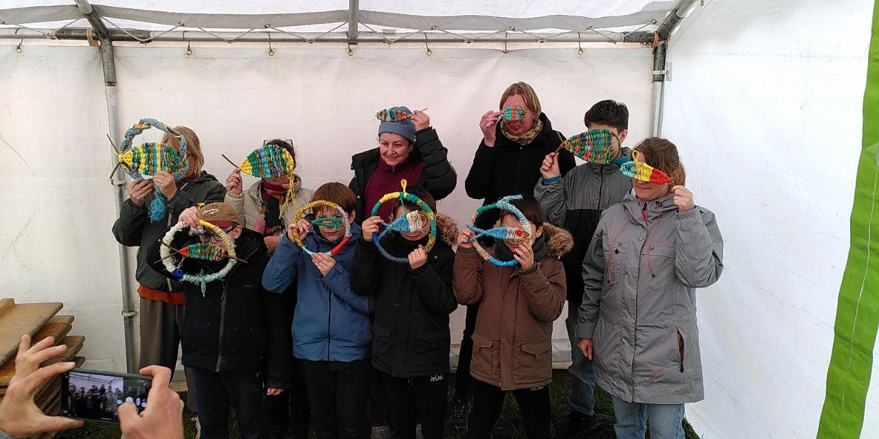 Maxim Marzi a rassemblé un bon petit groupe de volontaires qui a tissé, tressé ou noué des liens collectés le matin.